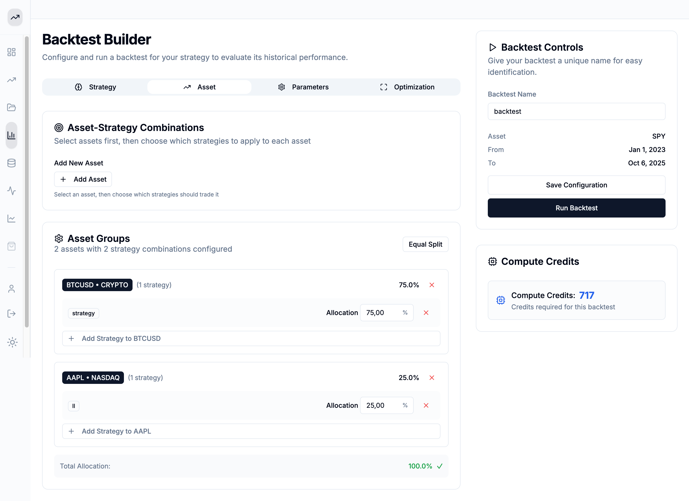 - Full optimization capabilities, including multi-asset and multi-strategy