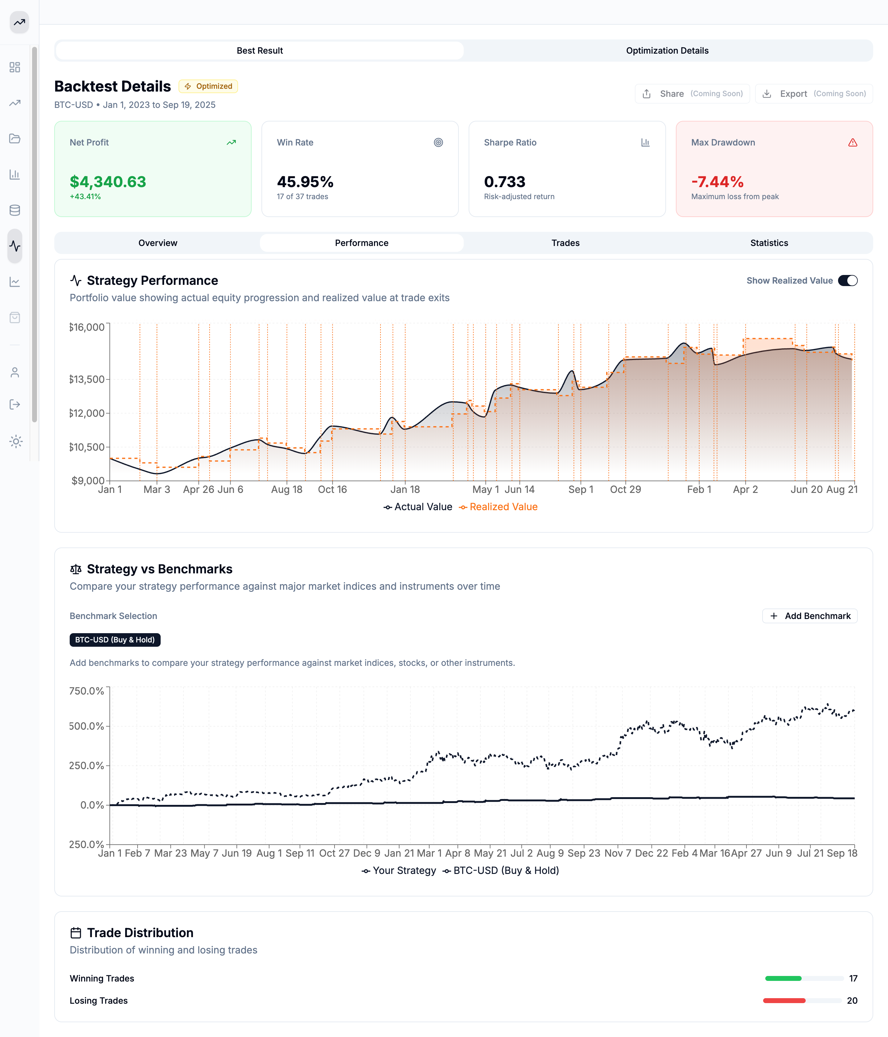 Get intelligent recommendations during strategy creation, easy interpretation of backtest results, and optimization guidance.