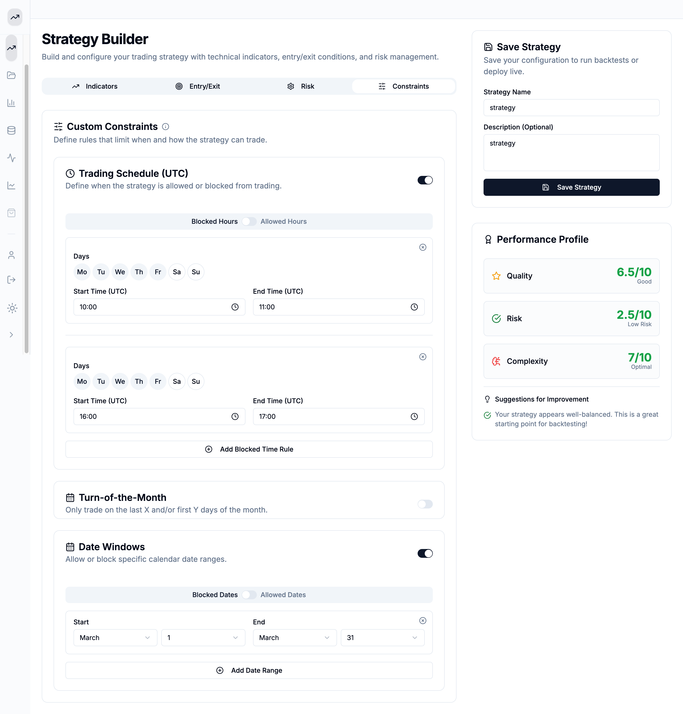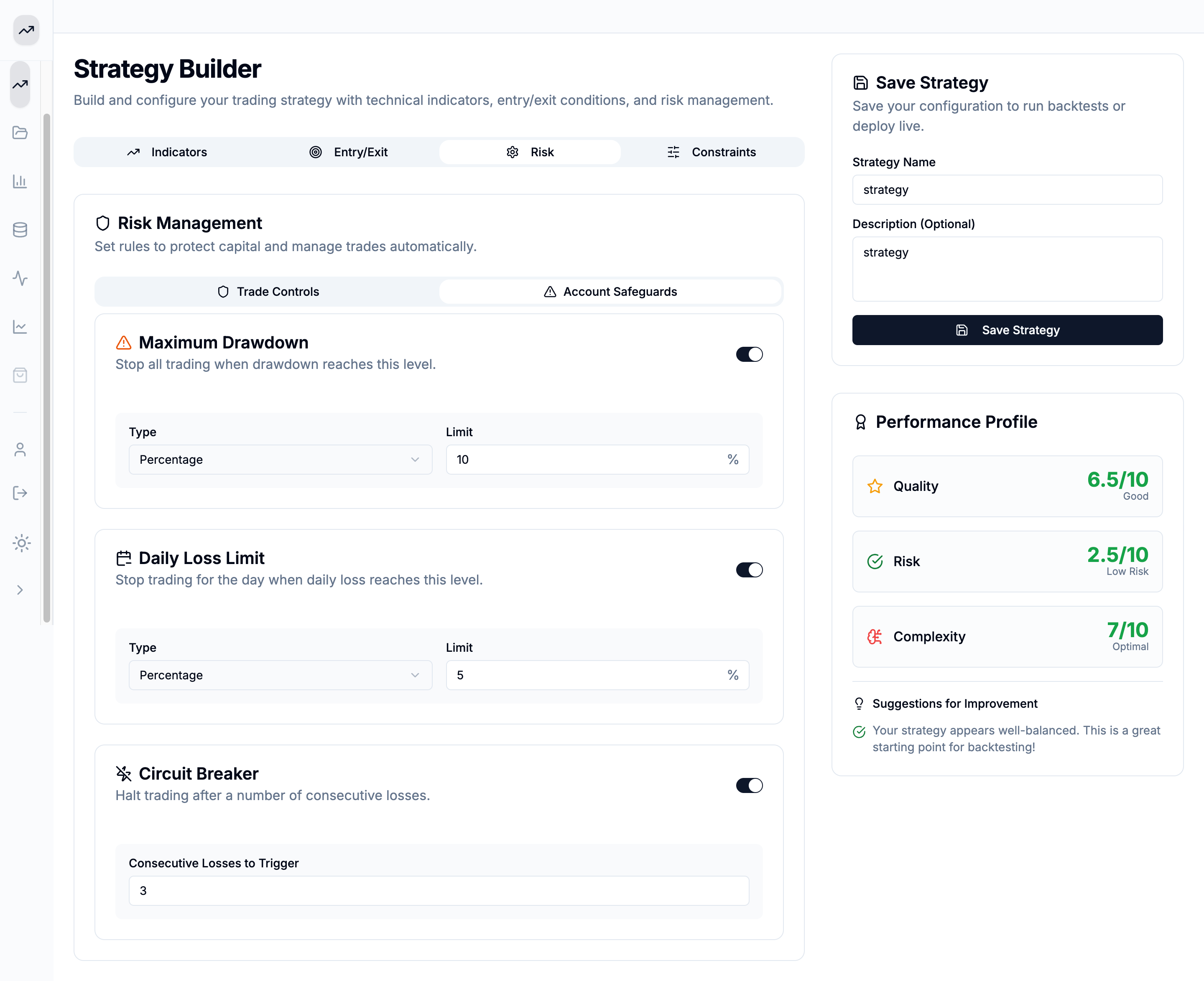 Strategy Builder Interface